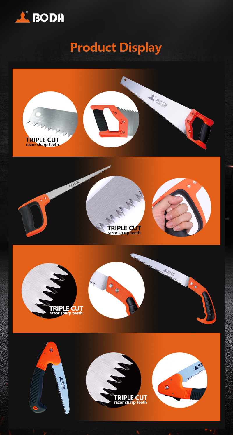 This hand saw features high-carbon steel teeth and an ergonomic handle design. The sharp and wear-resistant teeth ensure smooth and efficient cutting, while the non-slip and shock-absorbing handle enhances operation comfort. Suitable for cutting various materials such as wood and plastic, it is widely used in woodworking, household maintenance and outdoor work. With portability and durability, it is a practical manual cutting tool.
