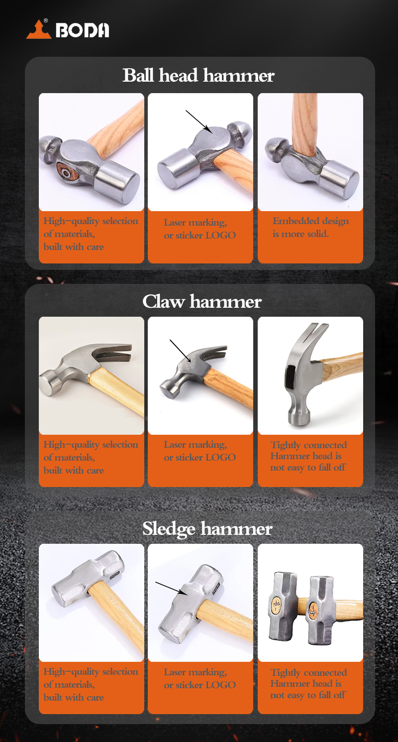 This hammer features a high-carbon steel head and a non-slip wooden/plastic handle, providing powerful striking force with shock absorption and anti-slip properties, and is durable. Available in various types such as claw hammers and ball-peen hammers, it is widely used in furniture installation, construction decoration and hardware maintenance, serving as a basic tool for daily work and industrial repair.