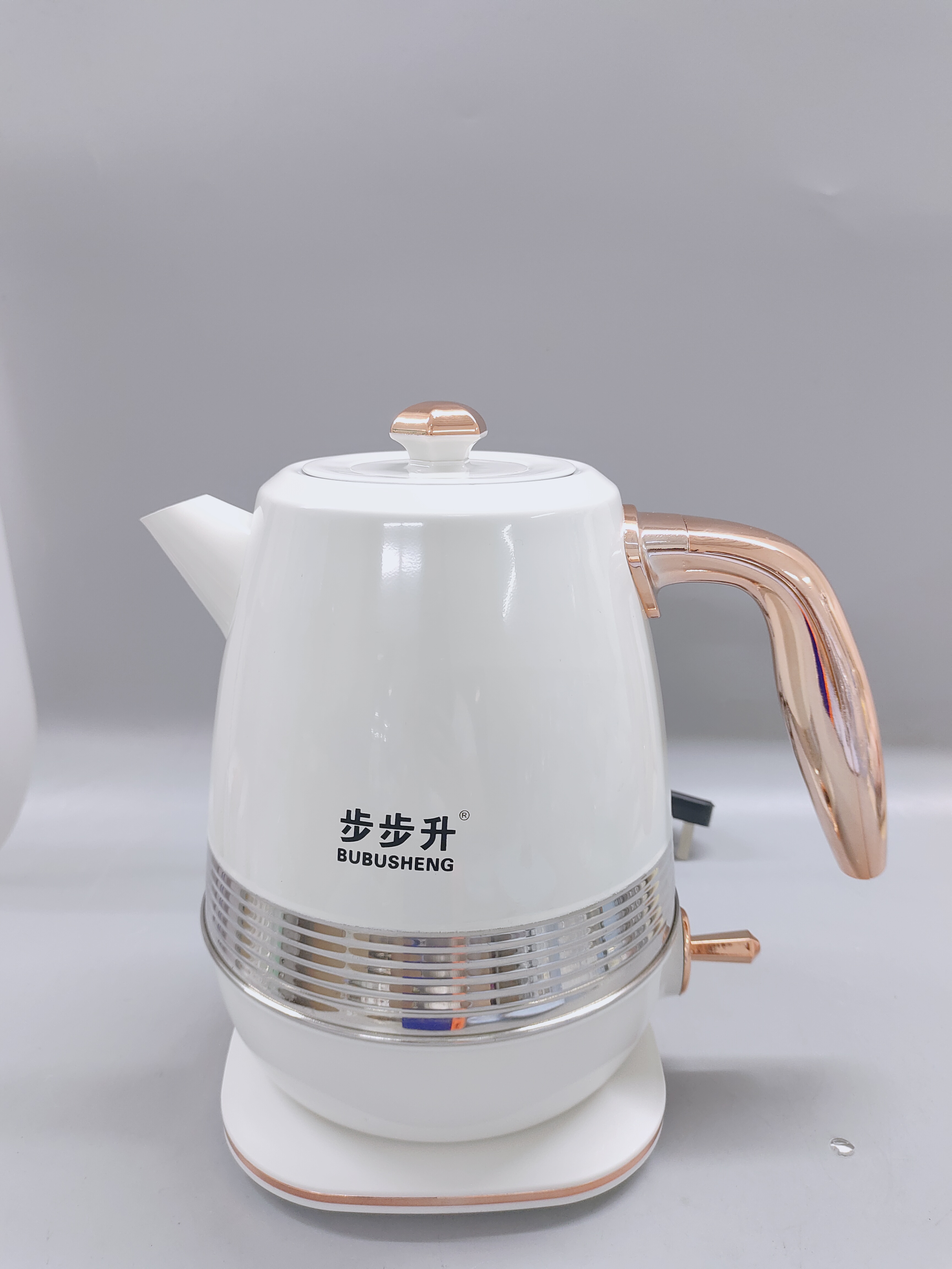 Double Layer Kettle(Outside metal decoration,inside S.S) Seamless inner tank,SUS304 ,thickness 0.4mm ,SUS inner lid,VDEplug 3*0.75*0.75m copper wire,double metal controller,capacity:1.5L