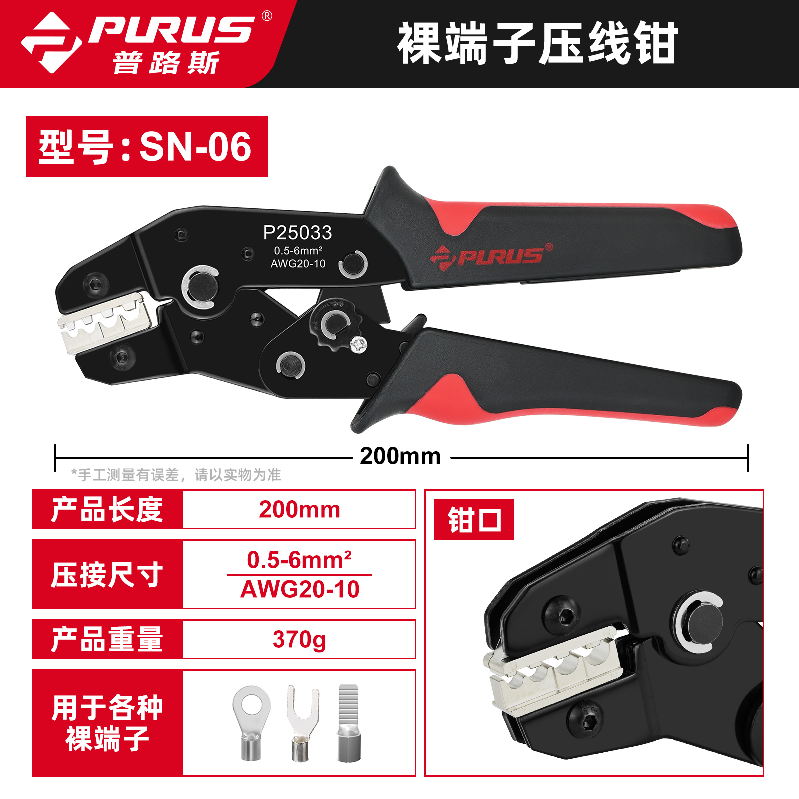 Non Insulated Open Barrel Terminal Crimp Adjustable ratchet and lever action constructionreduces fatigue degree. Crimping range:0.5-6mm²/AWG20-10 Quick release safety lock