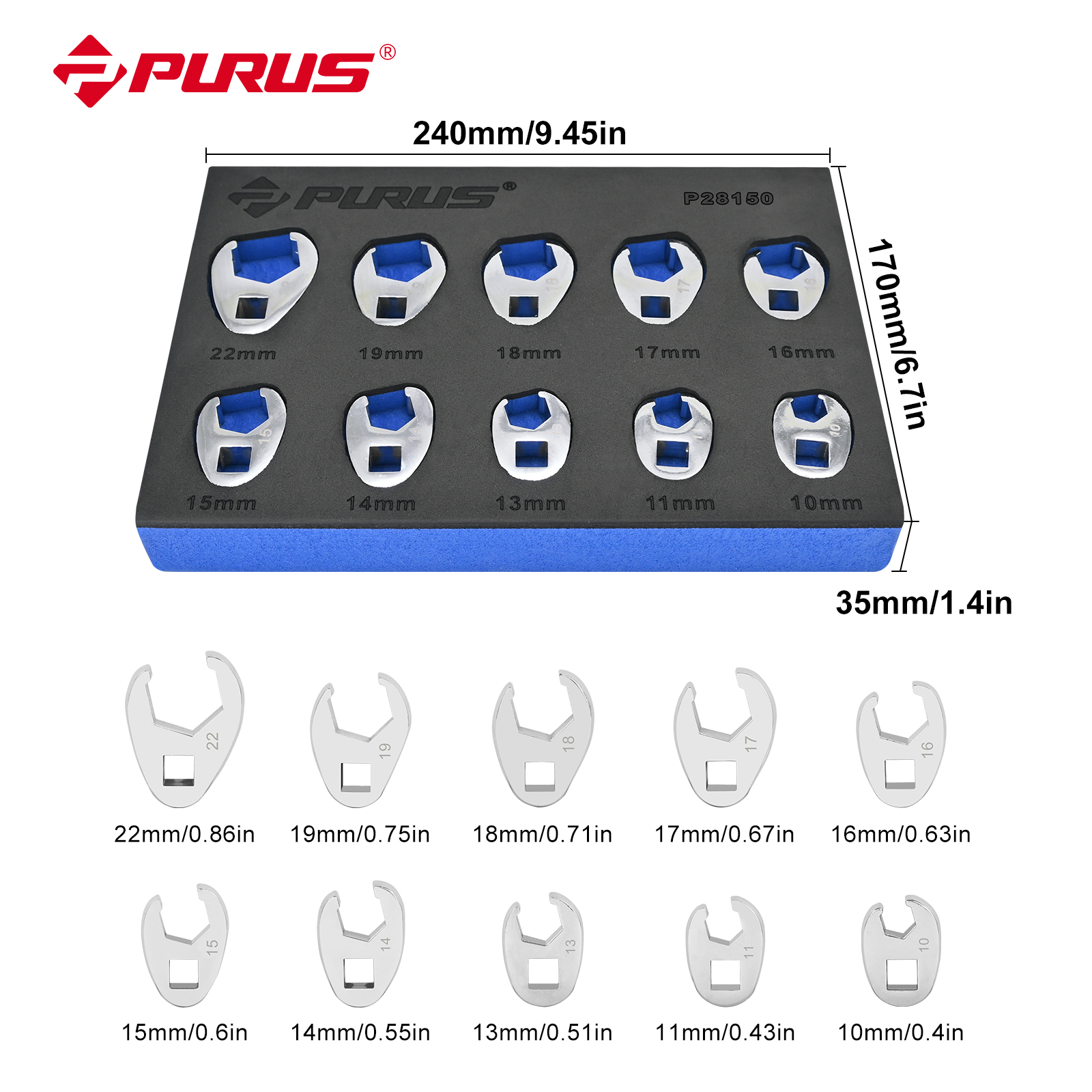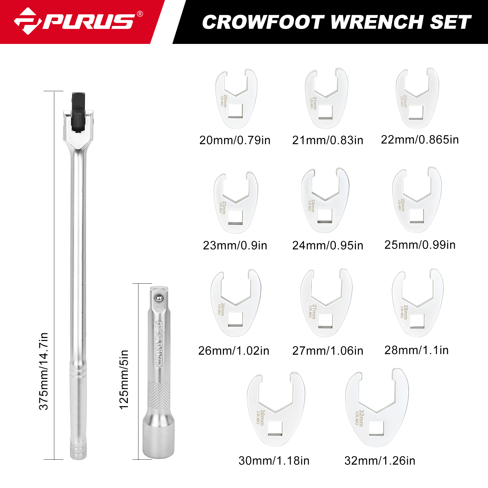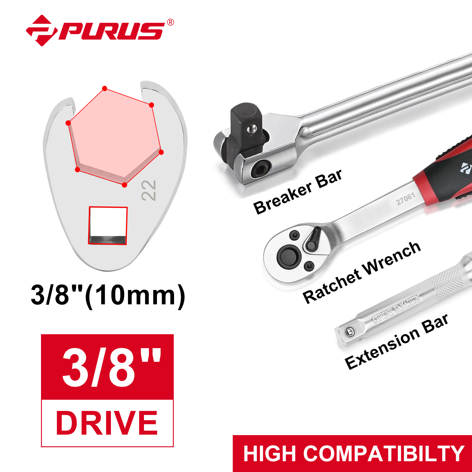 Headset at: 15° Drive: 3/8"(10mm) Surface: chrome-plated, polished Plastic Case,2-component soft foam insert Set details 10PCS:10/11/13/14/15/16/17/18/19/22 13PCS:20/21/22/23/24/25/26/27/28/30/32/Breaker Bar 15"Extension Bar 5"