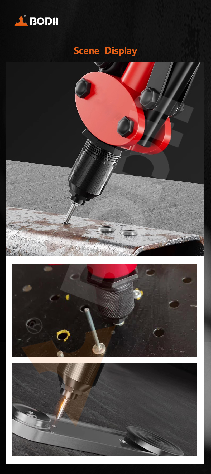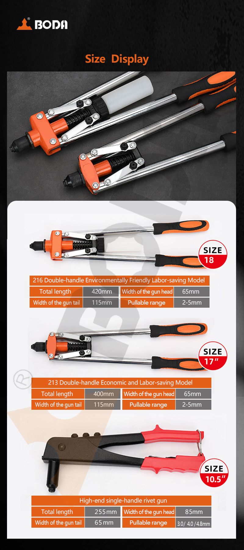 本系列铆钉枪为专业级手动工具,采用高强度合金材质打造,结构坚固耐用,操作省力便捷。产品适配多种规格抽芯铆钉,广泛应用于钣金连接、五金装配、建筑装修等场景,具备精准铆接、稳定出钉的特点,是工业制造与日常维修的高效辅助工具。
