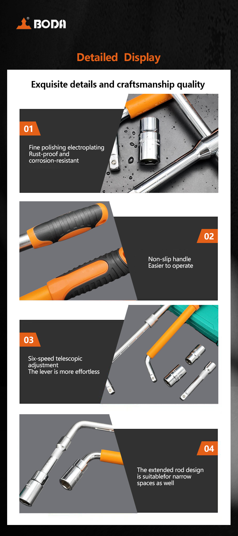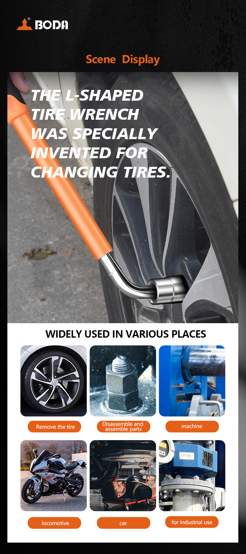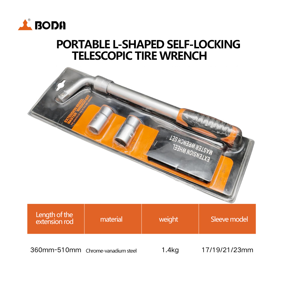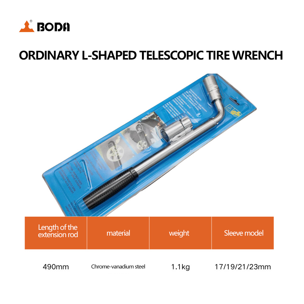 本 L 型套筒轮胎扳手采用高强度合金锻造,L 型结构设计省力高效,可快速拆装汽车轮胎螺母。产品配备多规格套筒头,适配主流车型轮胎螺栓,握柄防滑耐冲击,兼具便携性与耐用性,是汽车应急维修、日常保养的必备工具。