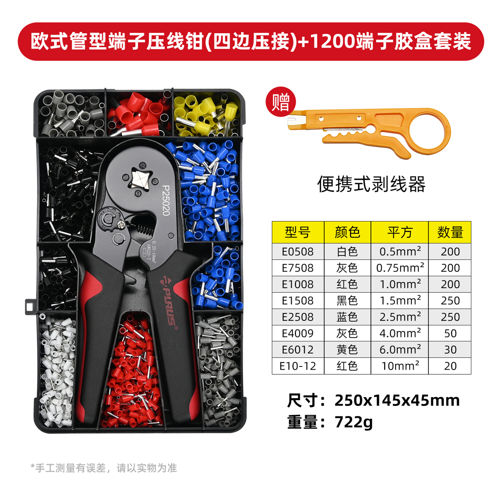 欧式管型端子压线钳套装(0.25-10mm²)