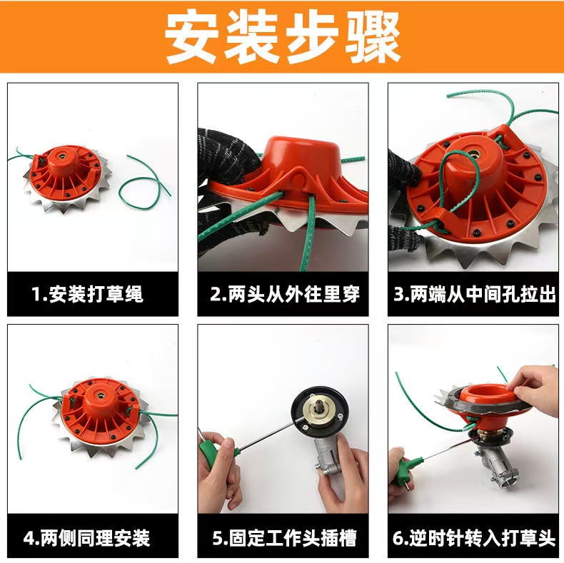 双重打草头, 产品介绍: 不锈钢双重打草头,进口尼龙,超锋利锯齿,多齿设计粉碎硬物,无坚不摧,16齿设计,切割快,效率快,高效除草; 特征:刀片开锋后经过热处理,硬度更高更耐用理,硬度更高更耐用