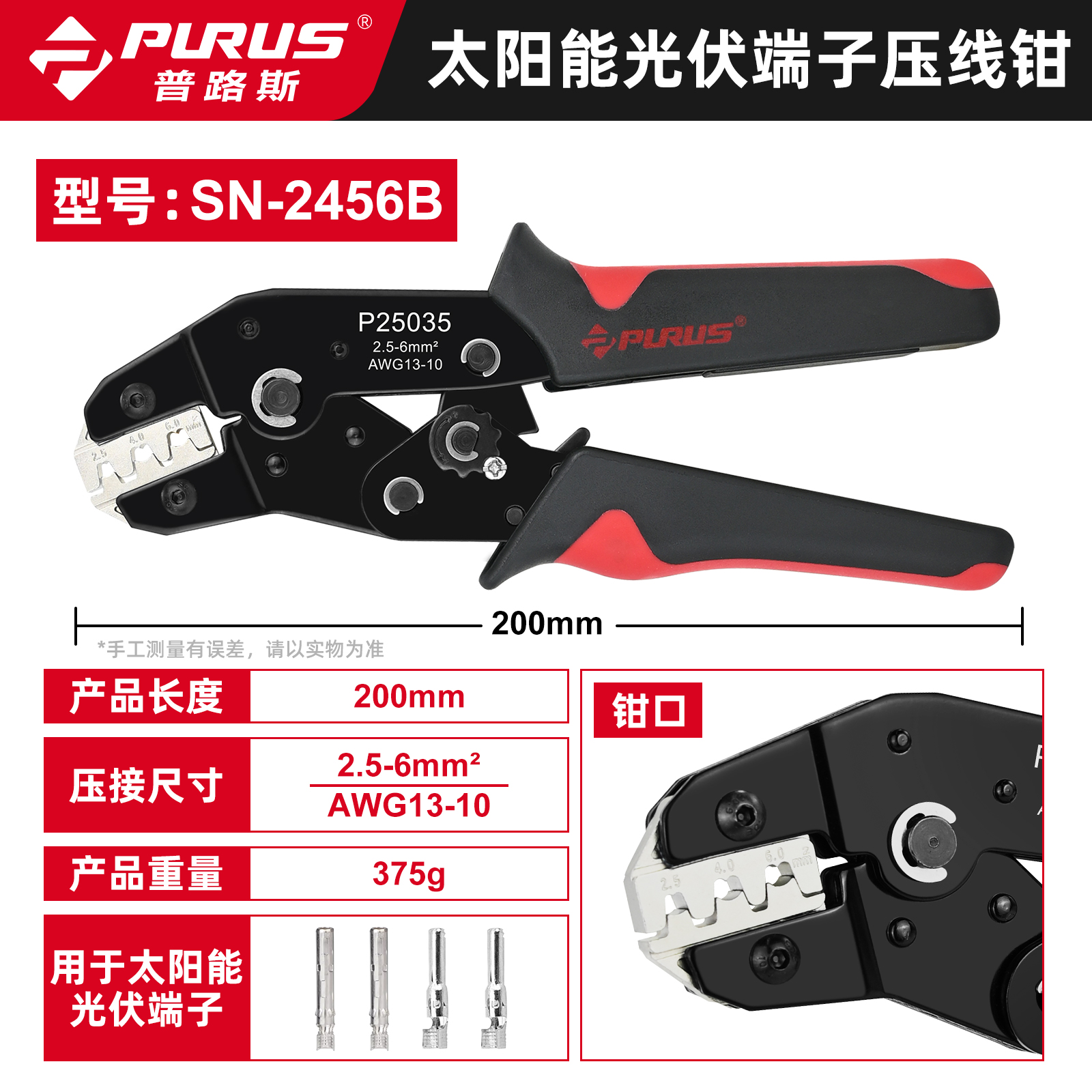 用途:压接MC4光伏太阳能端子 省力棘轮设计,操作轻松、压接效果好 压接范围广泛可压接2.5-6mm²端子 体积小巧,操作简单,压力可调节